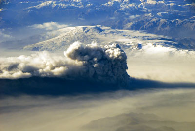 But onward to more interesting subjects. See above! This was the view on Wednesday as we flew from Santiago to Punta Arenas. We were indeed lucky enough to see the Chaiten volcano. My camera was, due to bad planning, impossibly stuck in one of my bags. I couldn’t get to it in time. So the photo above was taken by Brett Hobson. As you can see, the Andes are enormous. You can also see that this cloud of ash looks very different from the clouds. It was unmistakable, an otherworldly sight.